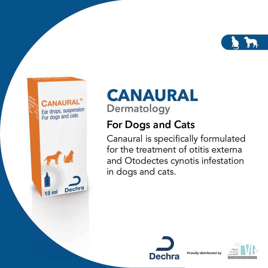 Dosage: Instill 5-10 drops of Canaural into the ear canal twice daily. The ear flap should then be held and the ear canal gently massaged to ensure maximum penetration of the Canaural suspension.